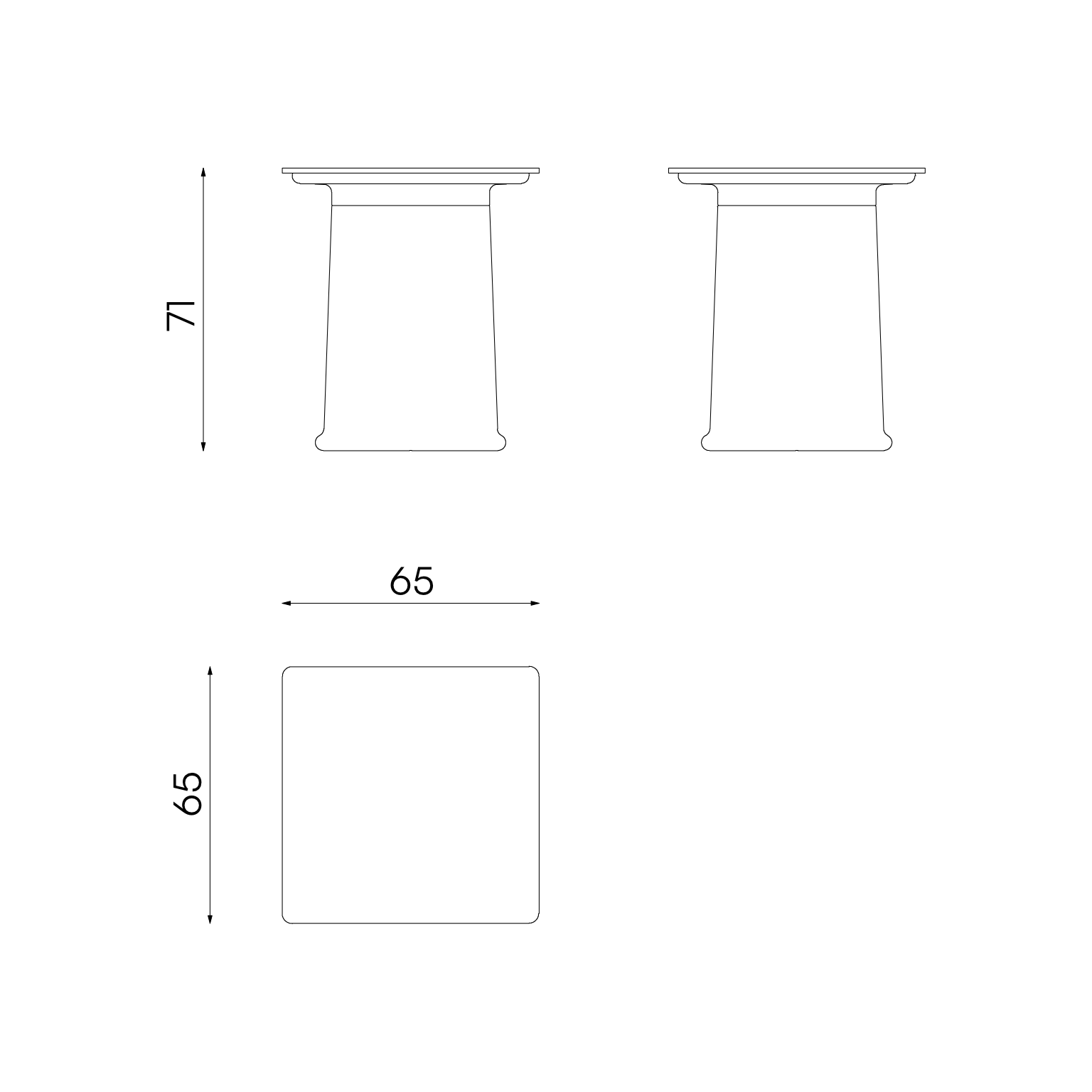 W65 x D65 x H71 (cm) Available heights – 55, 71, 109 (cm)Available tabletop dimensions – 65×65, 80×80, 90×90, 100×100 (cm)