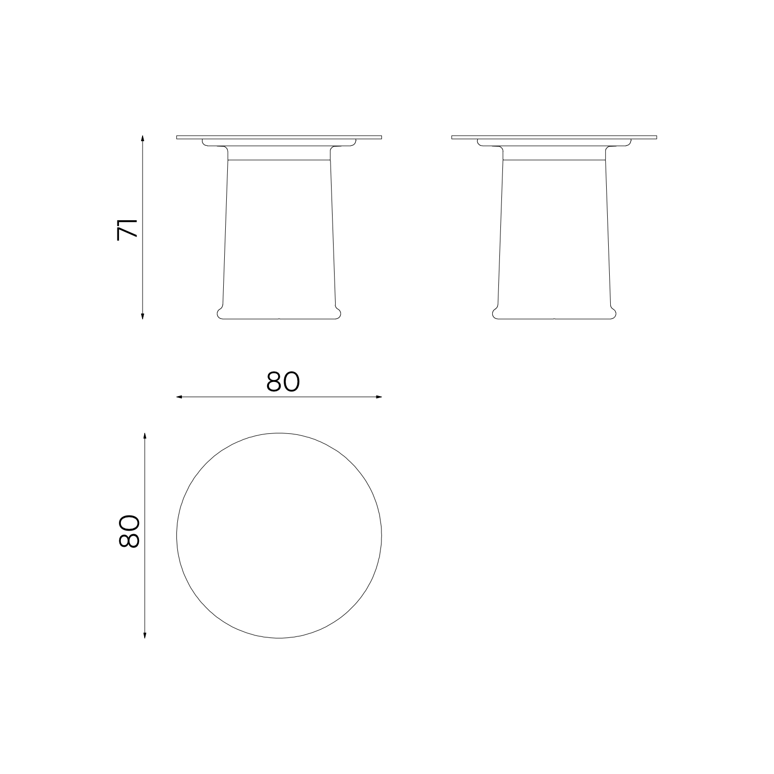 W80 x D80 x H71 (cm) Available heights – 55, 71, 109 (cm)Available tabletop diameter – 65, 80, 90, 100, 110, 120 (cm)